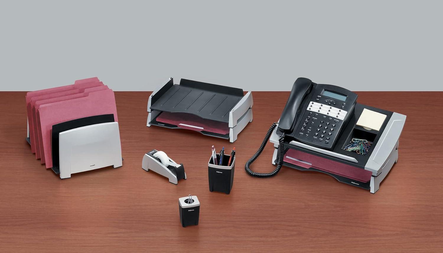 Works with other Office Suites products: telephone stand, file sorter, laptop riser, or more letter trays.